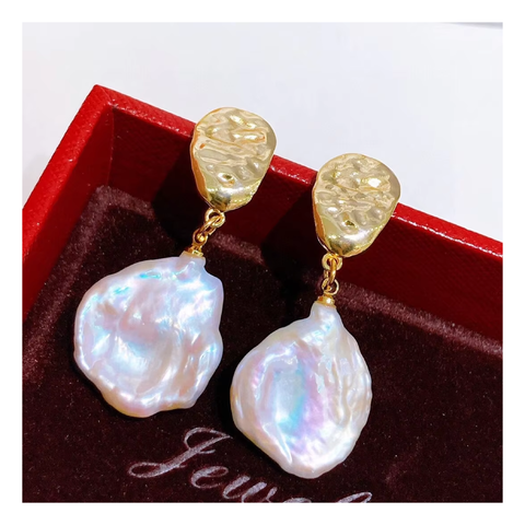 أحدث تصميم للمجوهرات والأقراط واللؤلؤ الطبيعي 14K petals أقراط لؤلؤ باروك