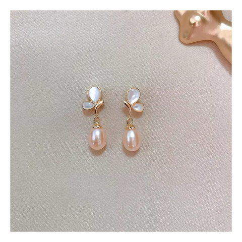 מחט פנינה פרפר מים מתוקים עגילי זהב פליז כסף פליז זהב גרסה קוריאנית של פשטות מצופה 14 קראט רומנטי טבעי